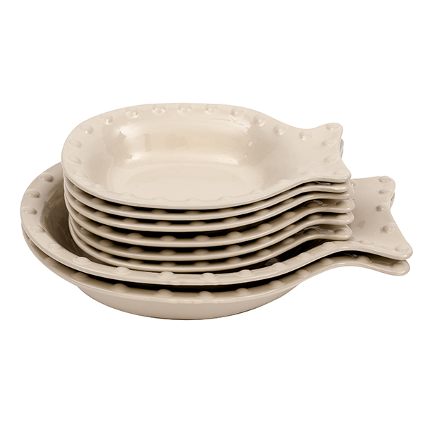 V?r herlige nyhet !!! Fiskeserviset og suppetallerken i fargen sand.Denne suppetallerknen er 27 cm i lengden og passer til fiskeretter b?de til hverdag og fest.